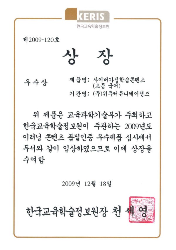 이러닝 콘텐츠 품질 인증 우수 심사 페이지 정보 작성자 WeDu 댓글 0건 조회 5,872회 작성일 19-05-30 19:32 본문 2009-12-18 우수상 제 2009-120호 이러닝 콘텐츠 품질 인증 우수 심사 한국교육학술정보원장 천세영 List Previous이러닝 기업의 수요 창출과 품질 향상 19.05.30 Next제 8회 디지털 이노베이션 대상 19.05.30