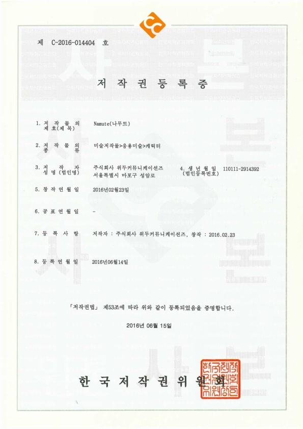 [한국/저작권] 나무트 페이지 정보 작성자 WeDu 댓글 0건 조회 5,773회 작성일 19-05-30 19:08 본문 2016-06-14 저작권 C-2016-014404 나무트 / 미술저작물>응용미술>캐릭터 List Previous[한국/저작권] 리안 19.05.30 Next[한국/저작권] 길리 19.05.30